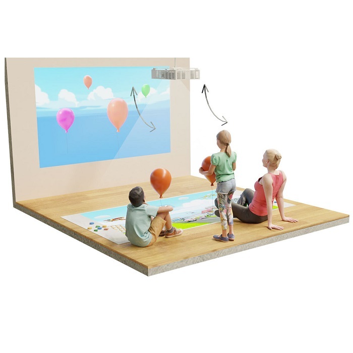 Режим интерактивной стены поможет с развитием крупной моторики, скорости, меткости и просто подарит массу веселья!