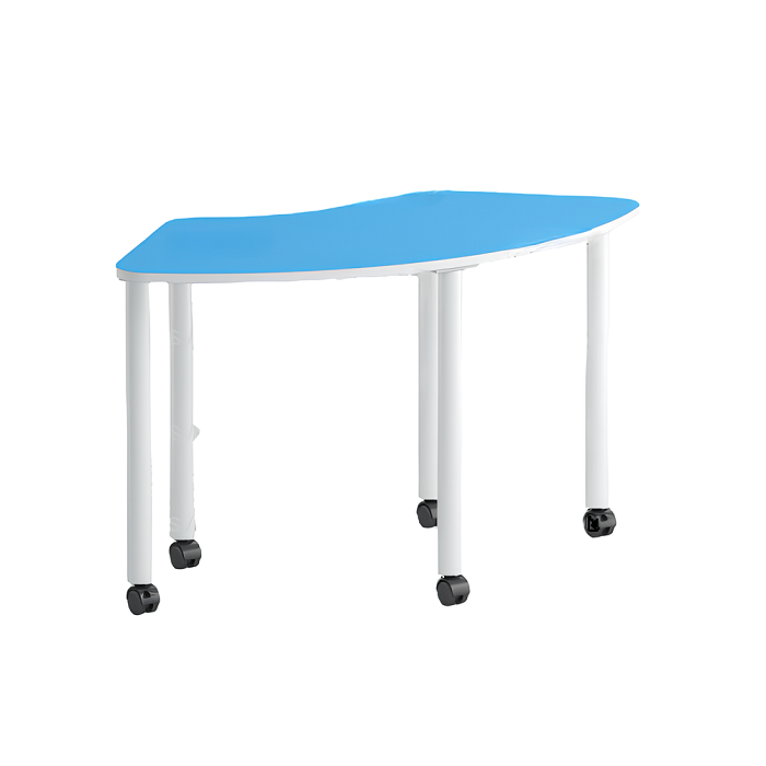 Стол РОБИК выполнен из ламинированной ДСП 16 мм, края обрамлены кромкой ПВХ 2 мм, изогнутая форма столешницы имеет форму сектора в 90 градусов от кольца. Углы столешницы закруглены радиусом. Столешница установлена на пять металлических опор с колёсиками (два колёсика с тормозом).