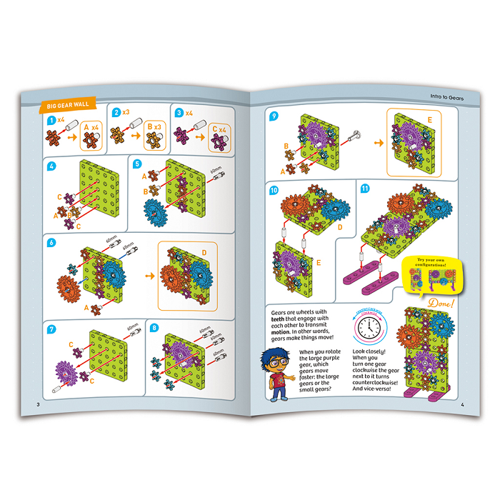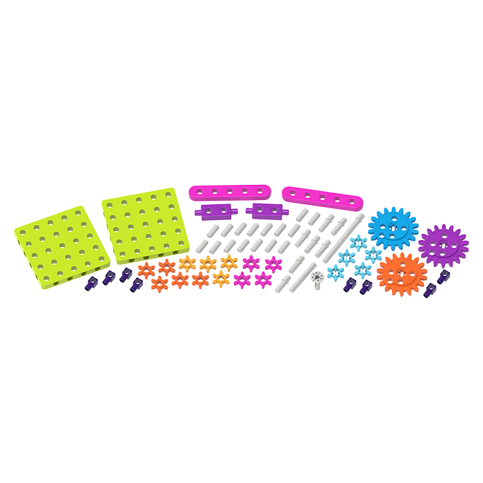 Конструктор предназначен для изучения основ зубчатой передачи и простых механизмов. Он состоит из 61 детали, из которых можно собрать 4 модели с зубчатой передачей. Набор подходит для детей, начиная с младшего школьного возраста, и помогает им понять, как работают механизмы, изменяющие скорость, мощность и направление движения.
