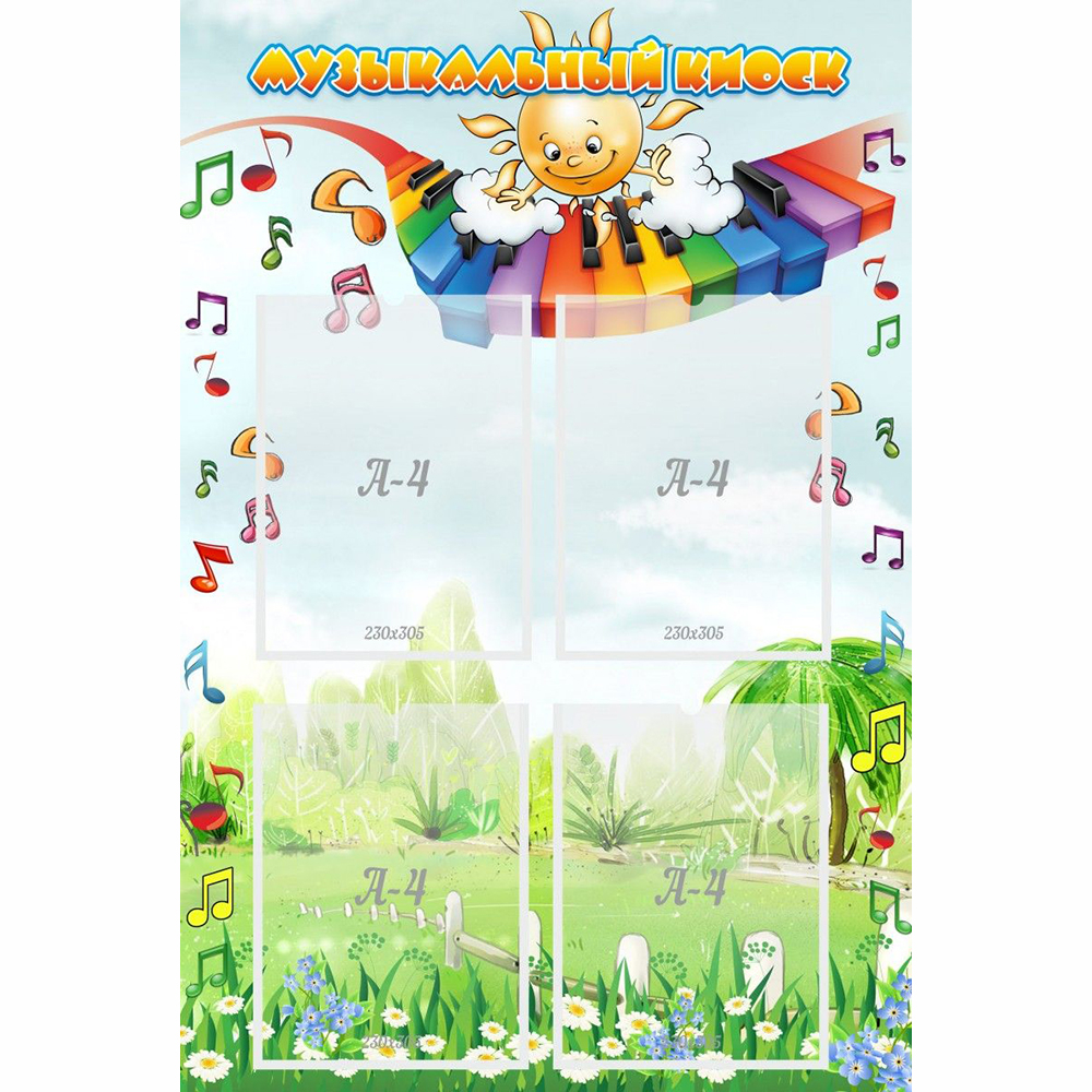 Развивать любовь к музыке нужно с самого раннего детства. Именно поэтому в детском садике обязательно должен быть такой оригинальный и красочный стенд, как музыкальный киоск. Назван он так не по своему прямому назначению, а по своей направленности. На стенде можно размещать любую информацию, связанную с музыкой, с уроками музыки. Яркие и сочные цвета привлекают детей и заинтересовывают их. Поэтому если вы хотите привлечь внимание к изучению музыкальных основ, то данный стенд подарит прекрасное начало для занятий. Украшайте кабинету с пользой, пусть каждый стенд несет свой вклад в воспитание и образованию детей.