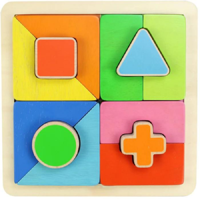 Панель состоит из 4 основных фигур, которые размещены в 4 квадратах. Дети должны будут разместить в общей сложности 12 штук различных деревянных блоков в правильных положениях. Хорошее соответствие цвета, соответствие формы и логическая обучающая игрушка. Все деревянные блоки изготовлены из устойчивого бука.