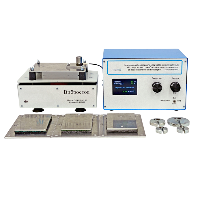 Оборудование позволяет экспериментально исследовать характеристики вибрации, свойства демпфирующих материалов и конструкций, а также оценивать эффективность виброизоляции. В основе комплекта — вибростол с регулируемой частотой и амплитудой колебаний, блок управления с цветным дисплеем и набор измерительных датчиков. Комплект включает различные виды виброизоляторов и звукопоглощающих материалов для сравнительного анализа.