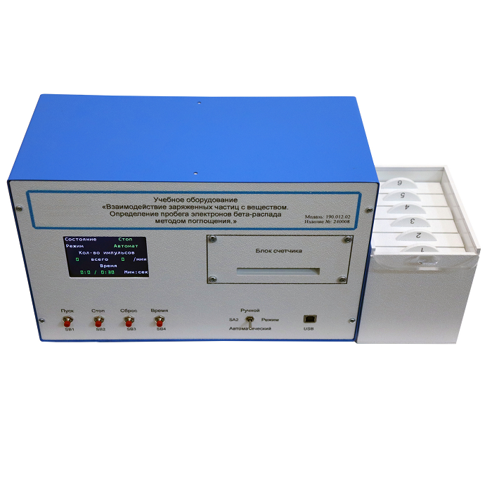Учебно-моделирующий стенд «Взаимодействие у- частиц с веществом. Определение пробега электронов бета распада методом поглощения», предназначен для проведения лабораторных работ с учащимися по курсу ядерная физика.