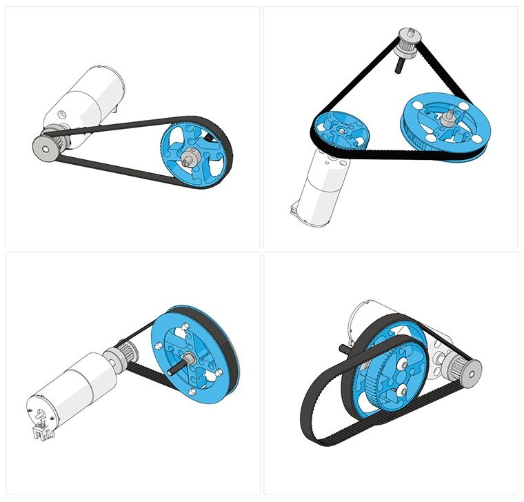 Набор для создания механизмов с ременной передачей Makeblock, содержит часто используемые детали. В составе шкивы, ремни, валы, подшипники и крепежные элементы.